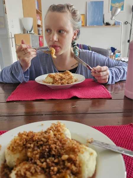 Durch das viele Fahren kommt die Hausarbeit entschieden zu kurz, und zum Kochen ist nicht immer Zeit. Dazu kommt, dass Anne sehr ängstlich ist und ich sie mitnehme, wenn ich zu Kieser gehe. Könnte ja sein, dass gerade während meines Trainings die Wehen einsetzen. Wir verzieren unsere Touren mit schönen Erlebnissen. Mal fahren wir an einem dieser lauen Abende an den Elbstrand, dann trinken wir in einer Kaffeemanufaktur köstlichen Kaffee, essen in der Nähe des Kieser-Studios richtig tolles Essen. Und manchmal bestellen wir oder holen etwas ab. Kurz: wir machen es uns schön!