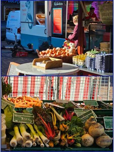 Für ein ausgewogenes und schönes Essen bin ich immer mal auf dem Markt; ich genieße die Präsentation von herbstlichem Gemüse und Obst.